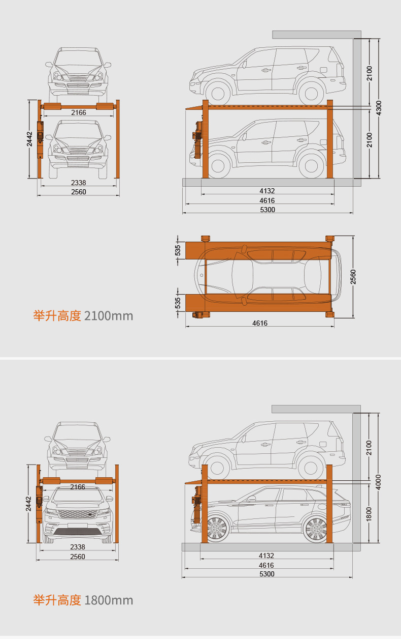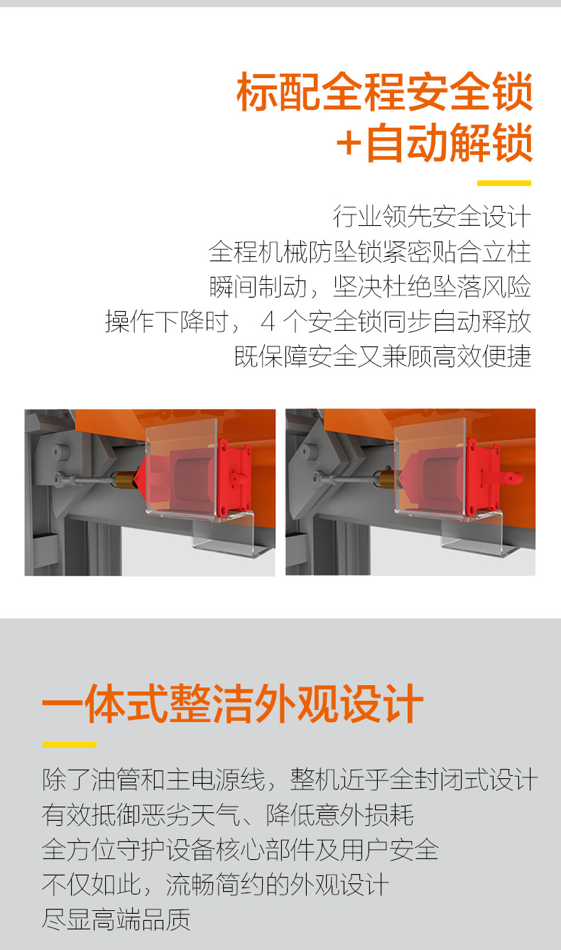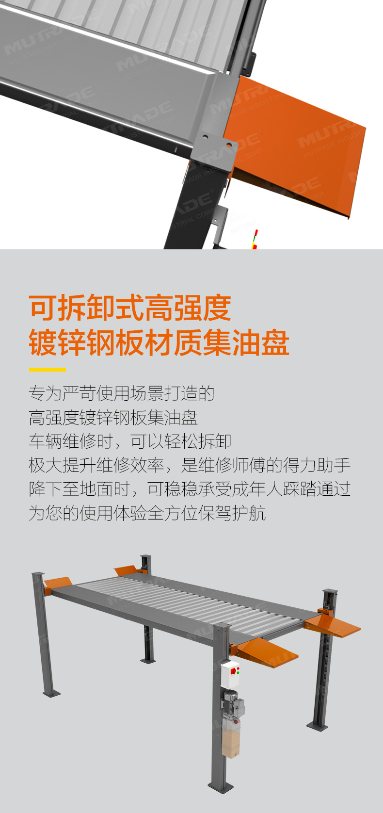 HP2136在傳統(tǒng)四柱式舉升機的成熟技術上深度優(yōu)化,專為停車和長時存車用途量身打造。標配自動解鎖方式,載重3600kg,跑板外寬增加至2166mm,停車高度2100mm,同時標配熱鍍鋅材質的高強度接油盤,兼具停車和修車功能。