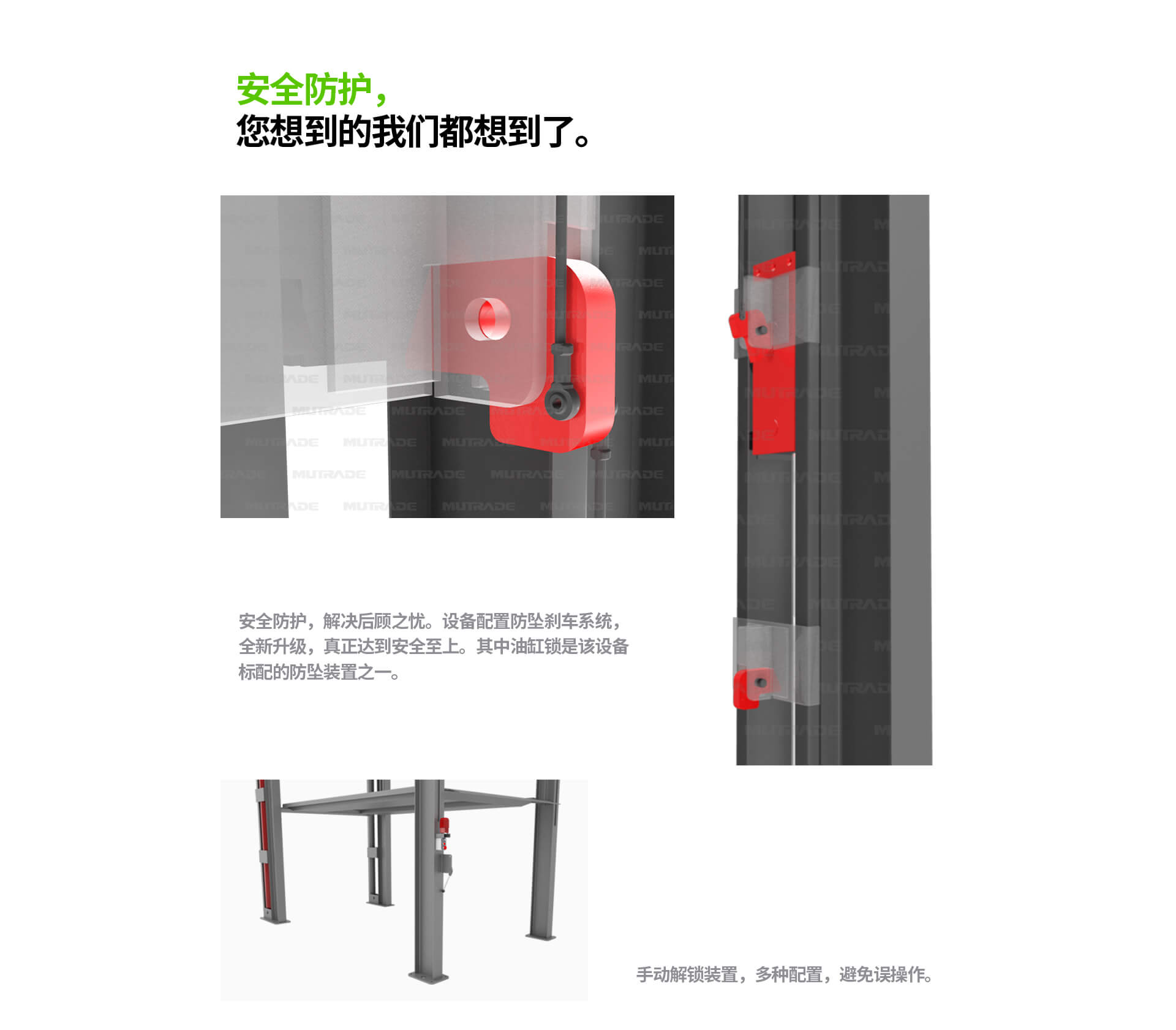HP2136在傳統(tǒng)四柱式舉升機(jī)的成熟技術(shù)上深度優(yōu)化,專為停車和長時存車用途量身打造。標(biāo)配自動解鎖方式,載重3600kg,跑板外寬增加至2166mm,停車高度2100mm,同時標(biāo)配熱鍍鋅材質(zhì)的高強(qiáng)度接油盤,兼具停車和修車功能。